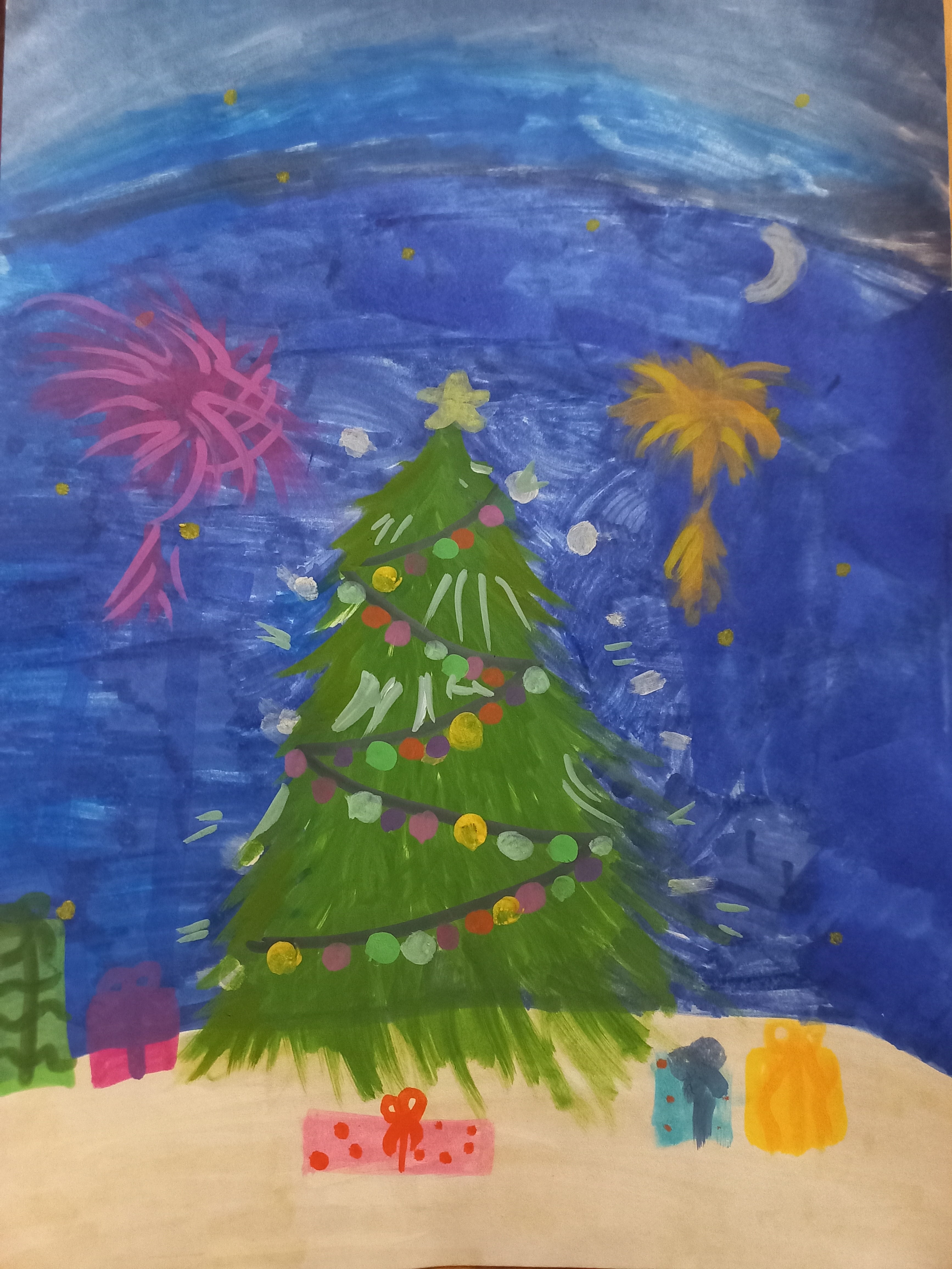 Международный творческий конкурс «Новогодняя открытка-2026». Автор работы: Яско Елизавета Игоревна. Возрастная категория: 12 лет. Учреждение: МАОУ ДО "ДЮЦ "Горизонт".