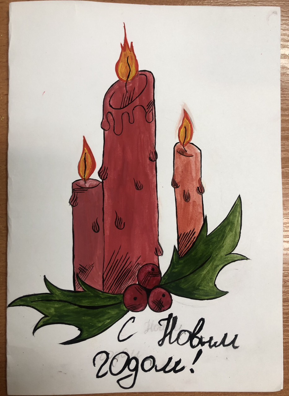 Международный творческий конкурс «Новогодняя открытка-2026». Автор работы: Соковинова Регина. Возрастная категория: 9 лет. Учреждение: МАОУ ДО "ДЮЦ "Горизонт".