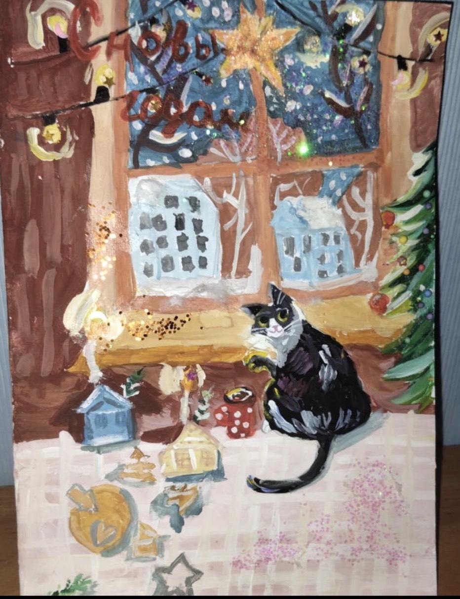 Международный творческий конкурс «Новогодняя открытка-2026». Автор работы: Корбачева Полина. Возрастная категория: 11 лет. Учреждение: МАОУ ДО "ДЮЦ "Горизонт".